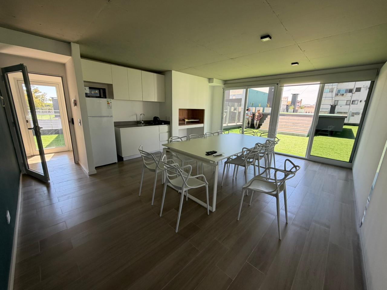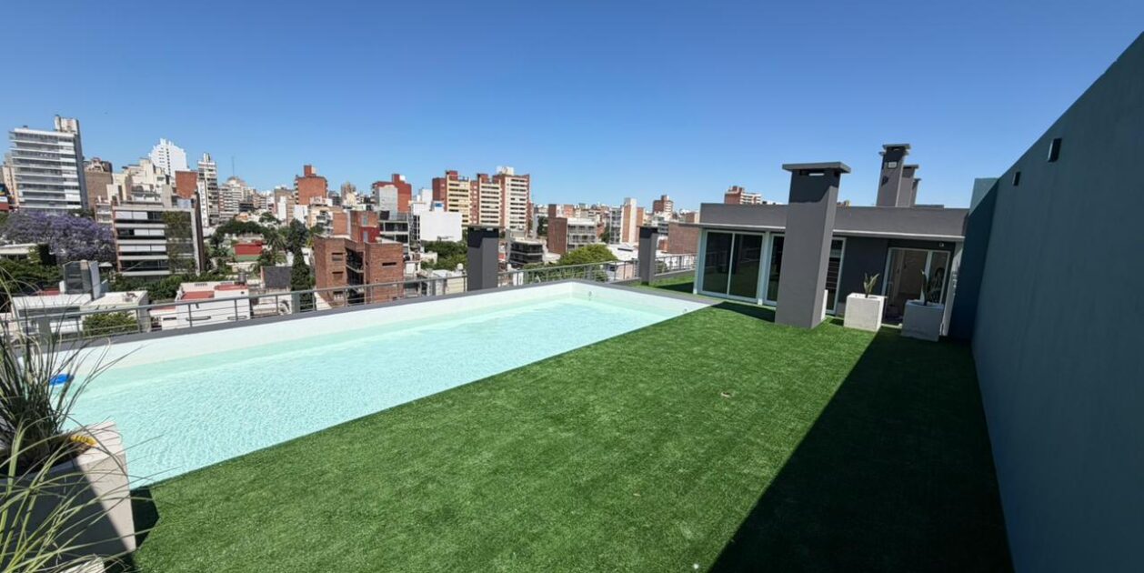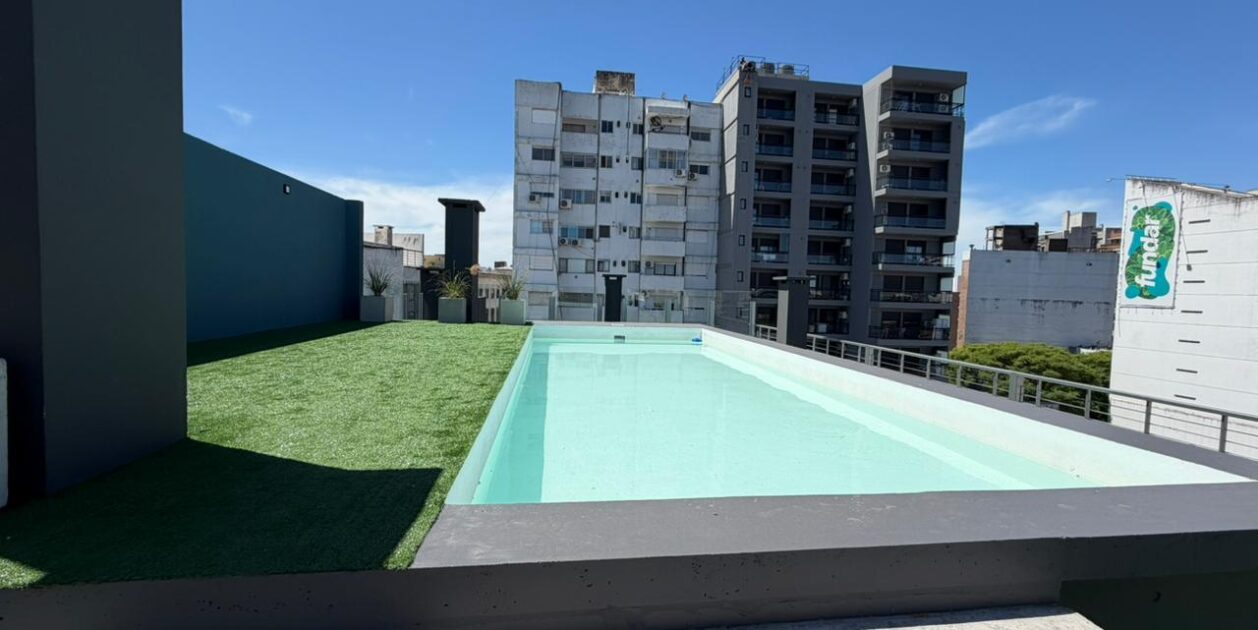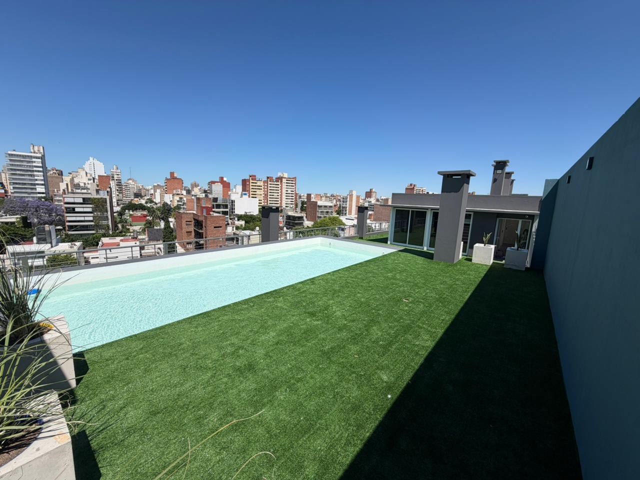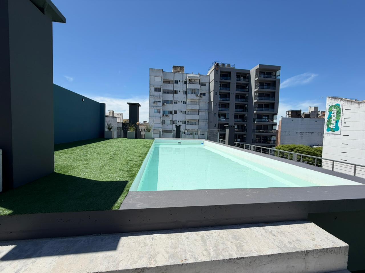 En terraza esta el sector común de amenitties SUM, Piscina y Solarium.