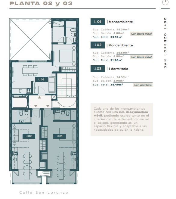 DESCRIPCIÓN DEL DESARROLLO | Edificio de Planta Baja y 6 pisos altos, configurado en monoambientes, departamentos de 1 dormitorio, 2 dormitorios, oficinas y cocheras. Posee terraza con parrillero de uso común, y unidades con patio, balcones y/o terraza exclusiva.